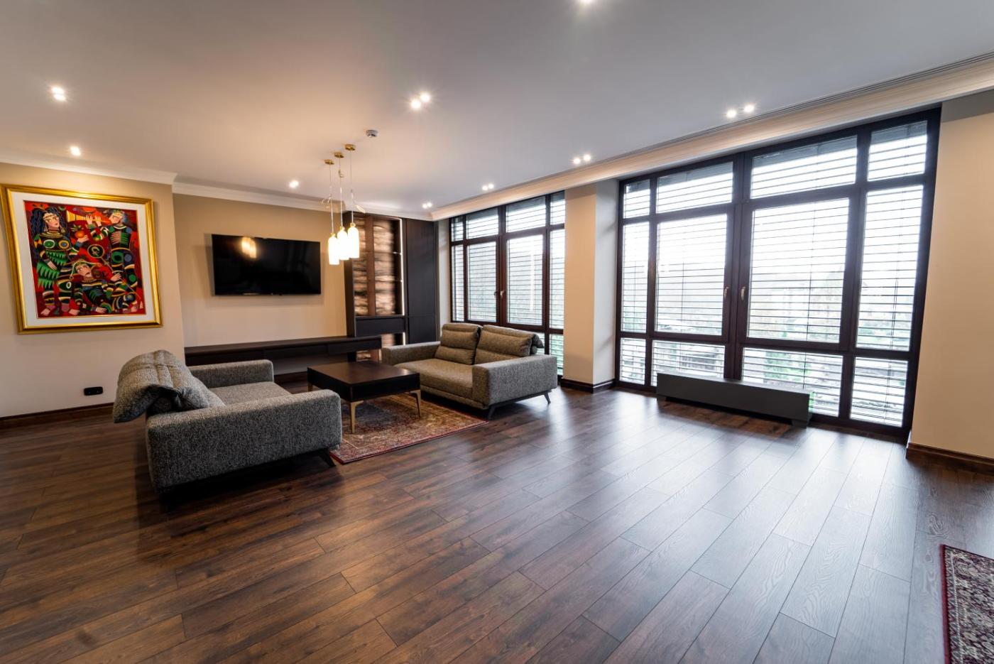 Presidential Suite. This spacious suite comprises 1 living room, 1 separate bedroom and 1 bathroom with a walk-in shower and free toiletries. The suite provides air conditioning, a minibar, a tea and coffee maker, a flat-screen TV with satellite channels, as well as lake views. The unit offers 1 bed.
